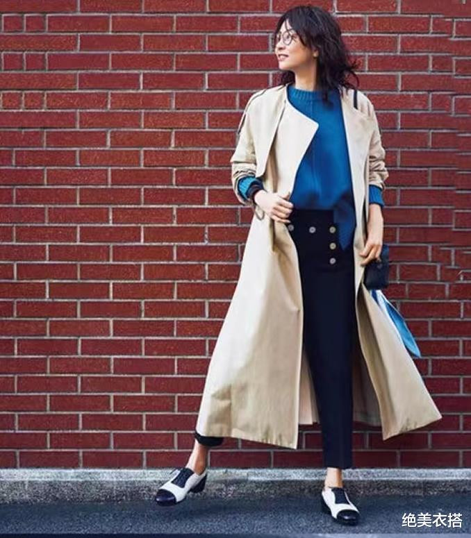 卡其风衣+高跟鞋,固然有它的优雅与端正,但一旦搭配休闲鞋,则能为这份端正,加一些青春的减龄气息。